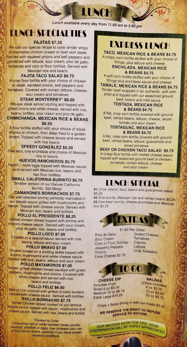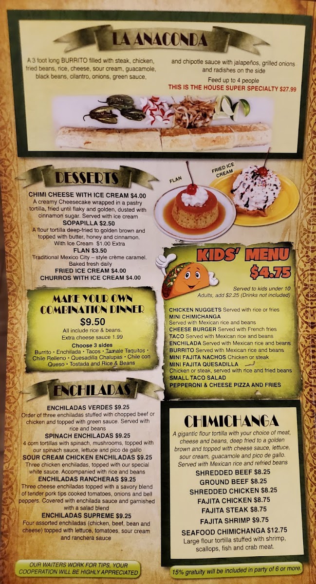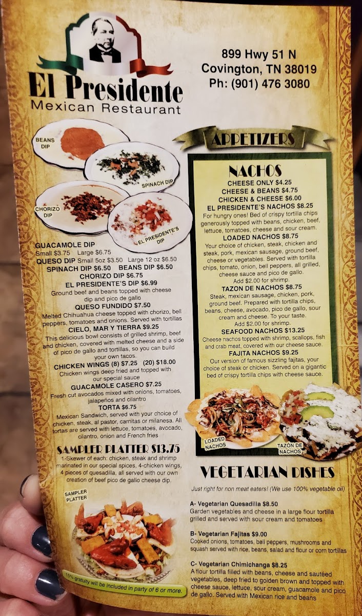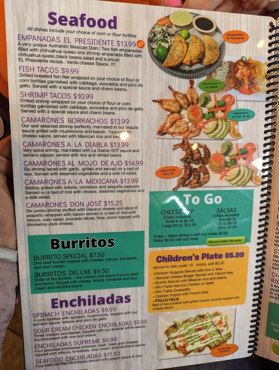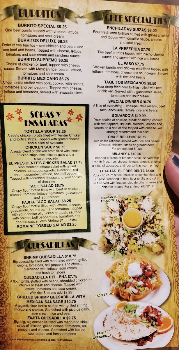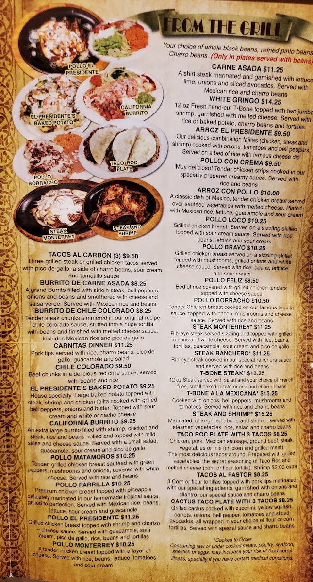 El Presidente offers a menu rooted in classic Mexican dishes, perfect for those moments when you want a comforting, laid-back meal. The selection features a variety of casual bites, from hearty entrees like Steak Ranchero and Steak Fajitas to flavorful specialties such as Birria Tacos and Chimichanga. Whether you're stopping by for a satisfying lunch or a relaxed dinner, the food pairs well with the welcoming atmosphere and unpretentious setting.